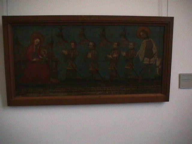 The pictures are of a painting called "de Heren van Montfoort" painted in 1380 it is a picture of four lords of Montfoort who participated in the battle of Staveren in 1345 (in which count Willem of Holland was killed by the frisians)